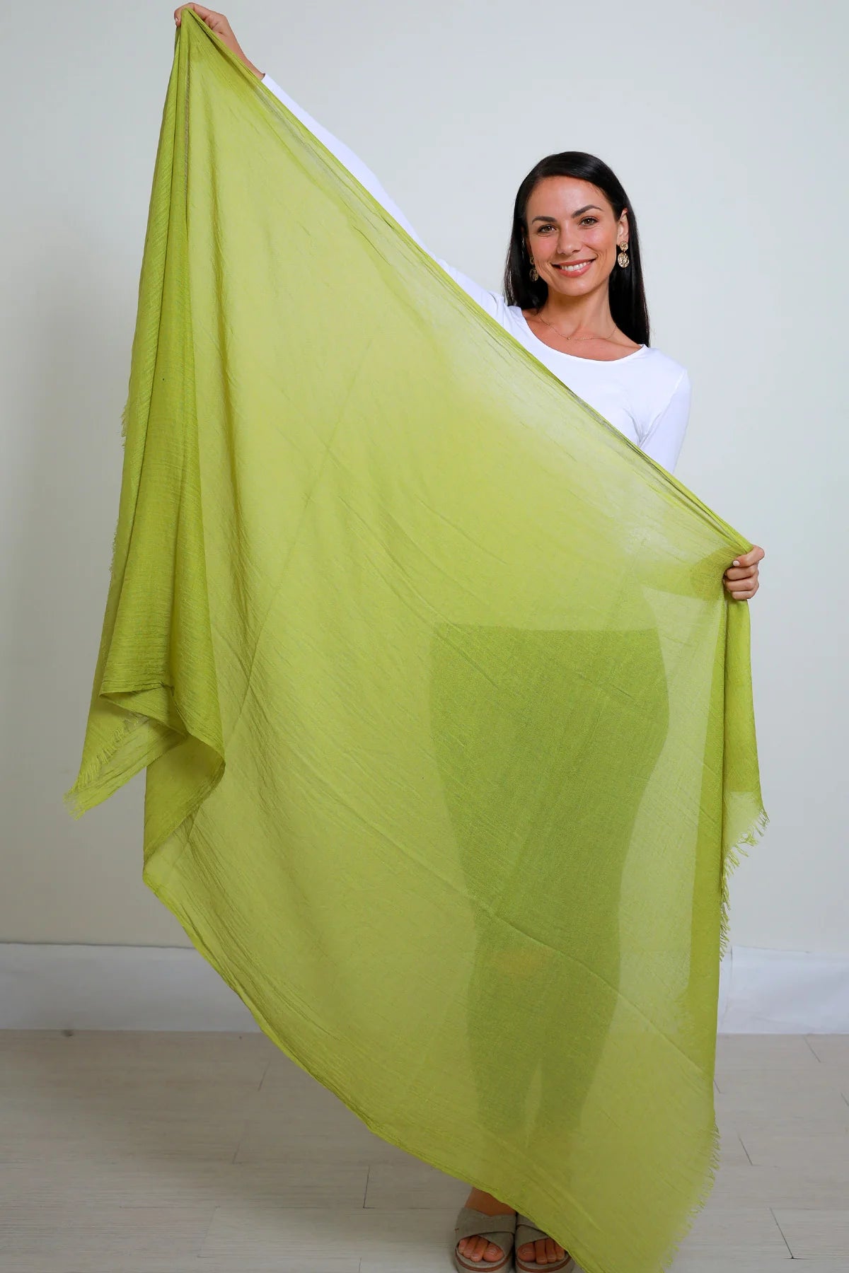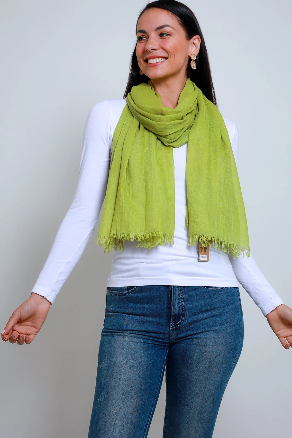 This Green Scarf by Lemon Tree is made of 100% Polyester. The perfect accessory to add a pop of color to any outfit, it also comes with styling instructions for versatility and ease. Elevate your look with this must-have scarf from Lemon Tree.